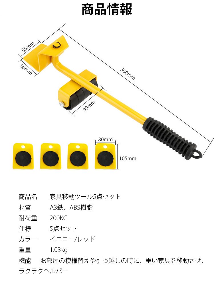 耐荷重200KG! 家具移動の神アイテム、力を省き、効率が高い!【期間限定、50%OFF】
